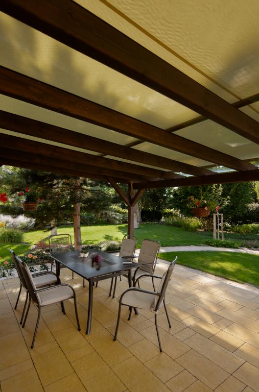 Žhne vám slunce na prosklenou střechu? Zastiňte ji! Rovněž tak hotové pergoly a užívejte si pohodlí.