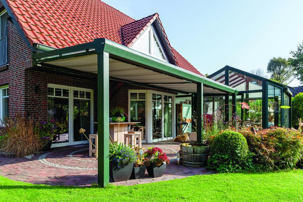 Zelená pergola se stíněním zimních zahrad